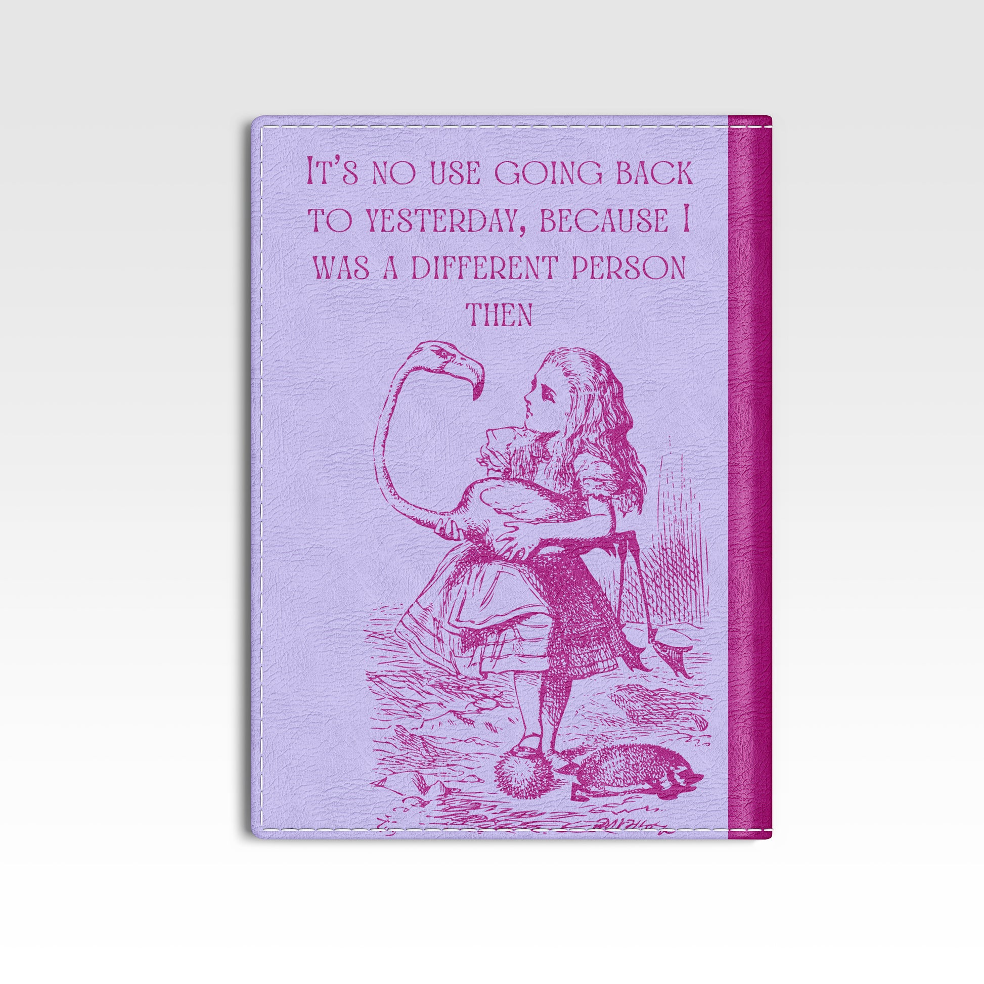 Travel in style with our stylish Alice in Wonderland passport holder. Designed in house, the design replicates the look of a vintage hardback book and will fit nicely inside your bag when traveling. On the front there's the classic illustration of Alice and the grinning Cheshire Cat. The back of the passport holder features a quote from C.S Lewis' classic tale.
