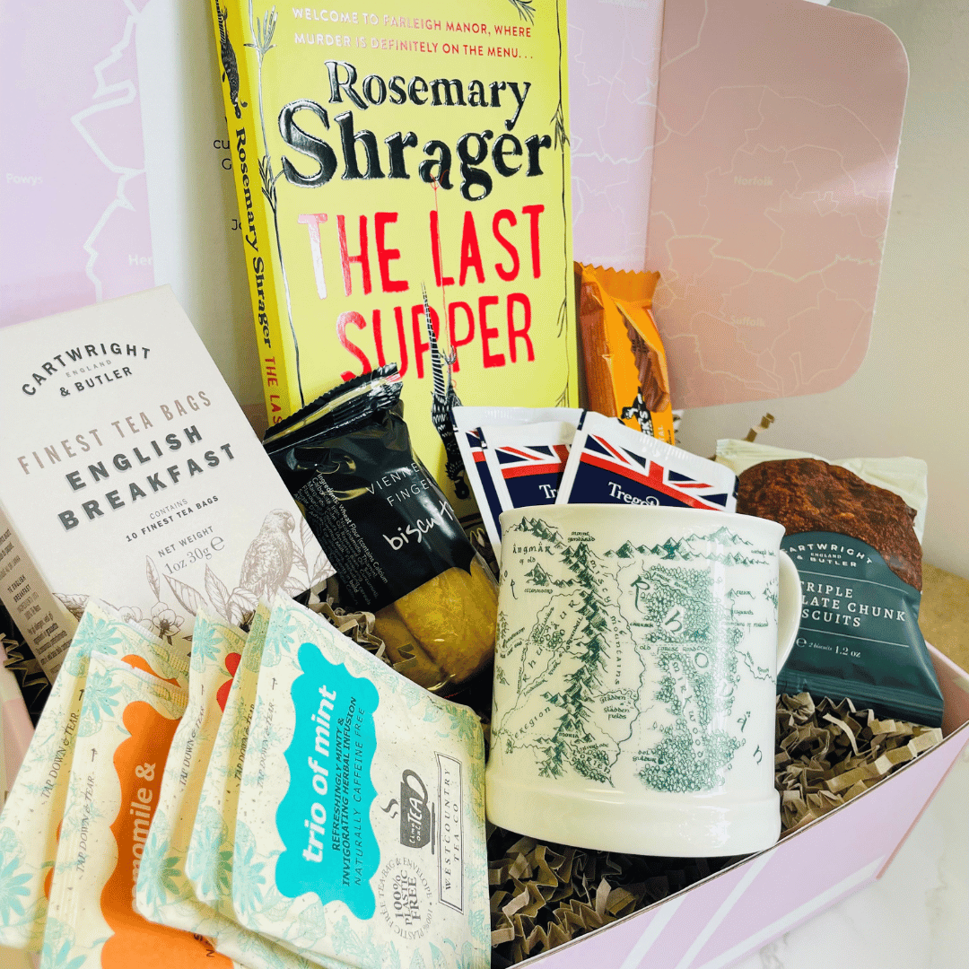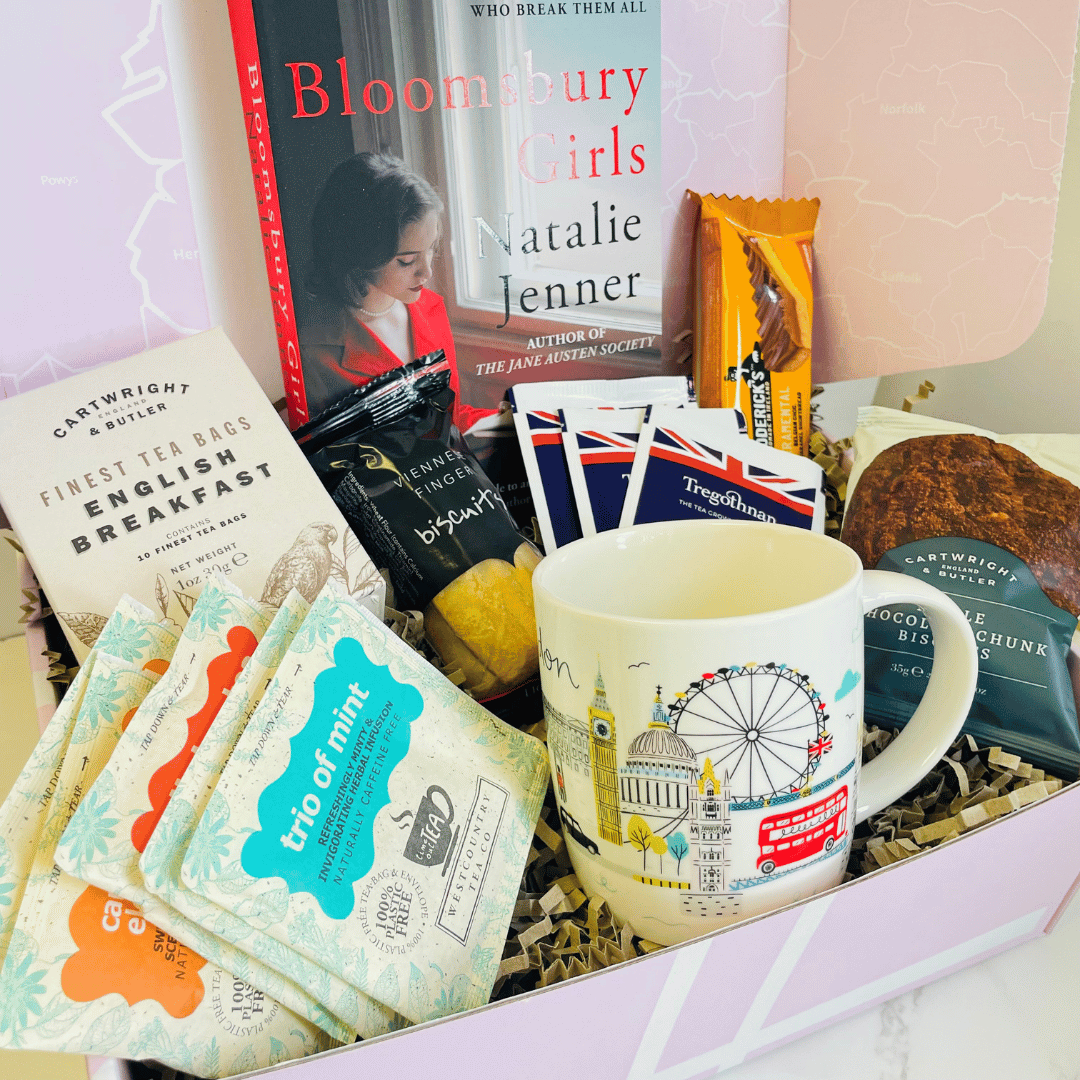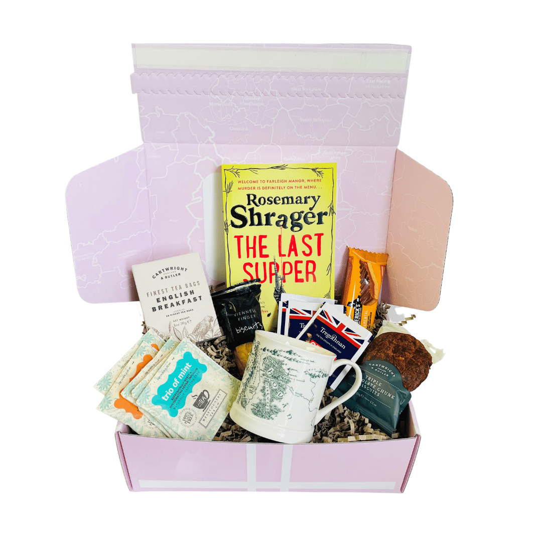 Introducing our latest gift package. A surprise box featuring a book from a British author, mystery British themed bone china mug and a selection of British teas and teatime treats.