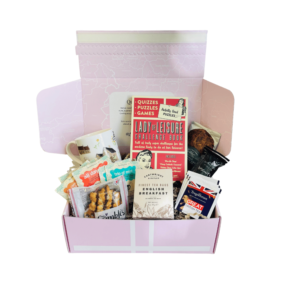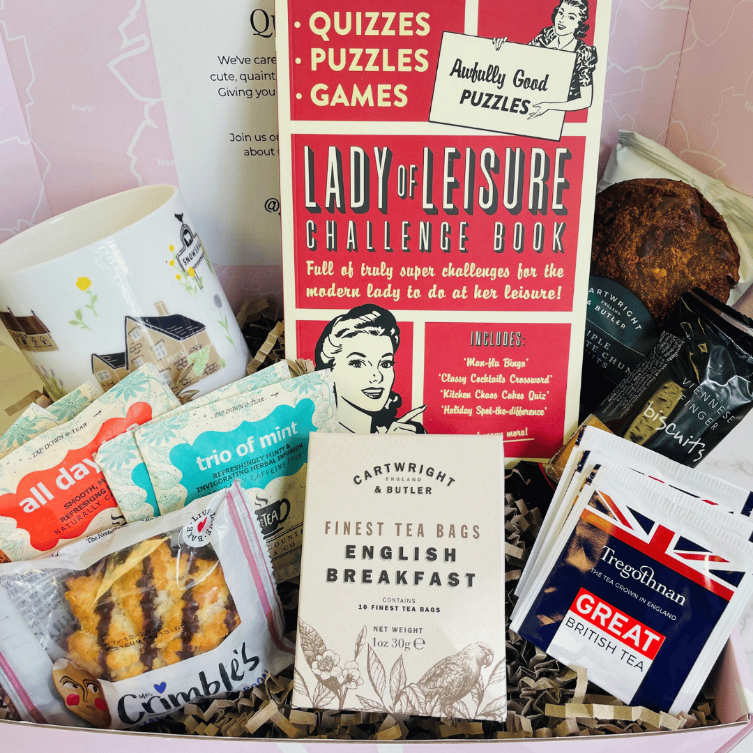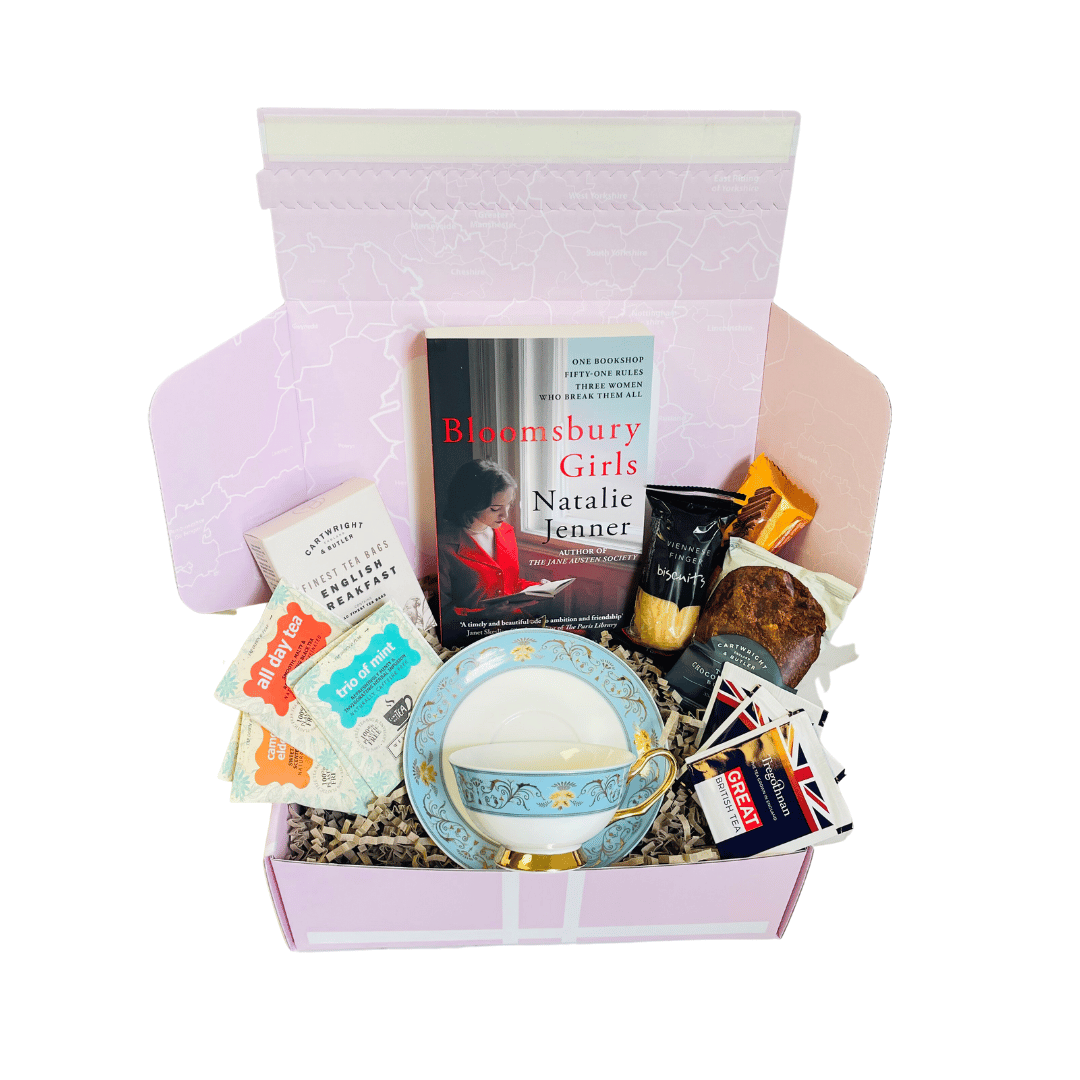 Introducing our latest gift package. A surprise box featuring a book from a British author, mystery British themed bone china mug and a selection of British teas and teatime treats.