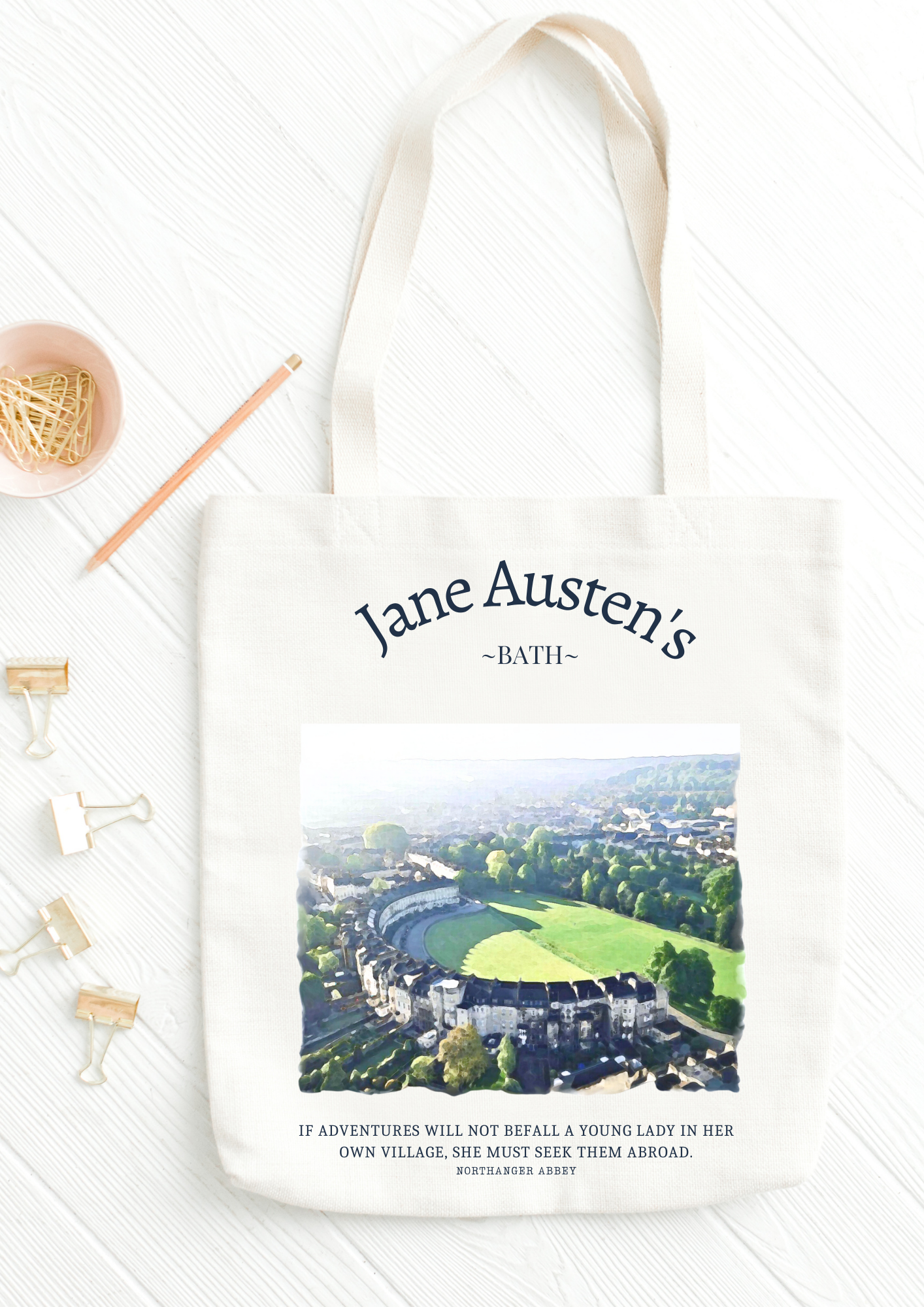 From our Photographic Lit tote bag we present this tote featuring a stylised image of Jane Austen's beloved city Bath.
